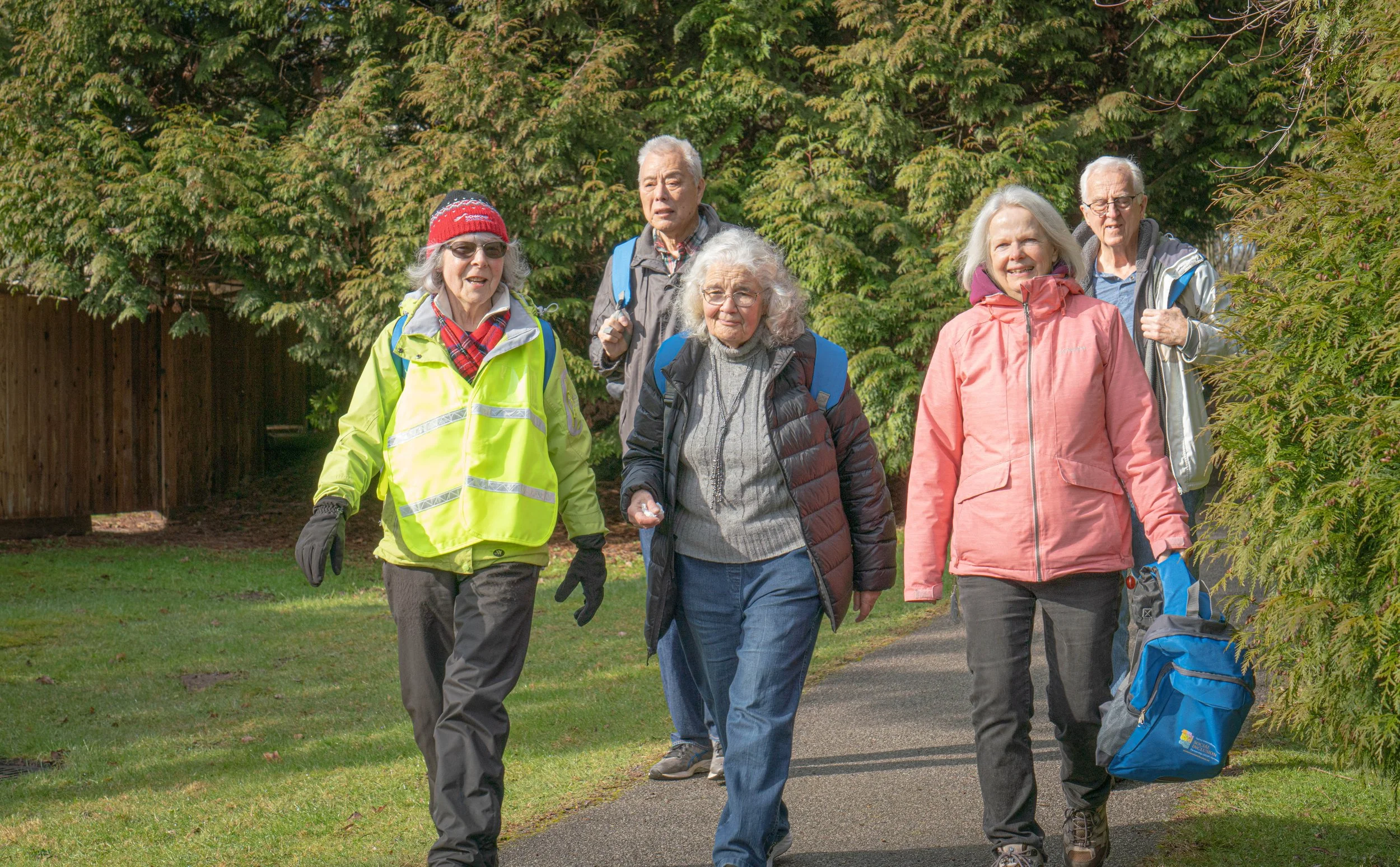 A guided walk organized by the WALKit program in Surrey, Canada, which helps older adults stay active, mobile, and engaged in their community. (City of Surrey)